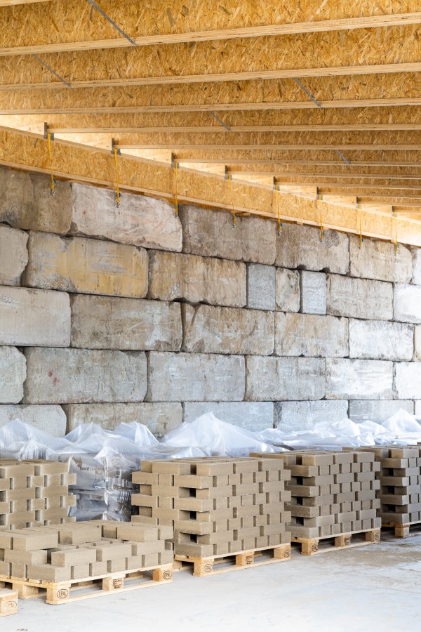 Les terres d’excavation récupérées des chantiers deviennent matériaux de construction, des enduits d'argile pour la finition des murs et des blocs de terre comprimée pour les murs, les meubles, les fours…